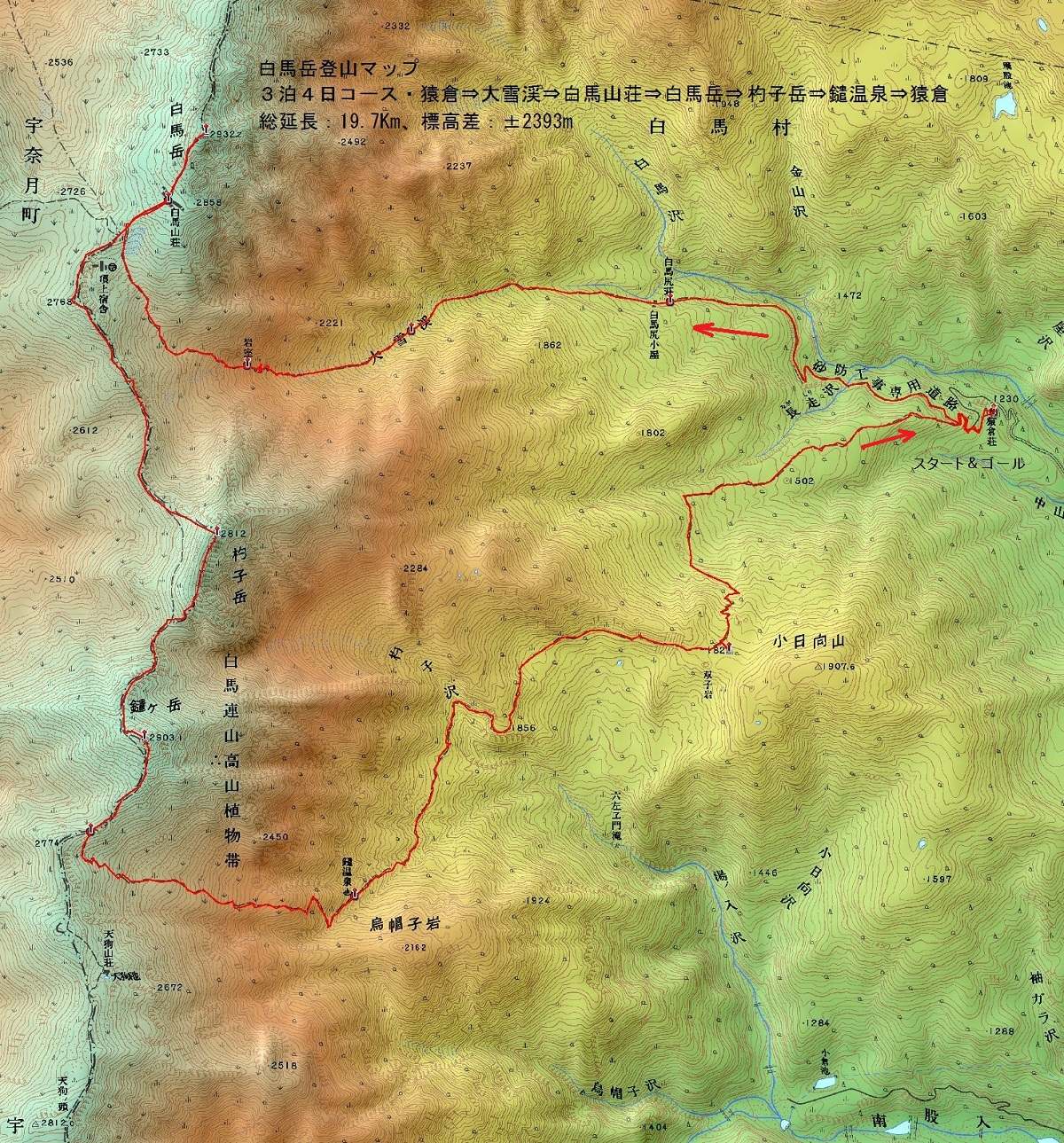 今回の登山は、ガイドブックの1泊2日コースを、3泊4日に延長し実施した。 それは、初心者と高齢者の転落事故を予防するための戦略である。 NさんのVoxyで豊田市を7:00に出発、白馬村を楽しみ、そばを食べてからの入山となった。 猿倉Pは、土曜日満車が心配されたが、午後の到着で、下山者の空きにすんなりと駐車、 登山届を村営猿倉荘前の届Boxに投函、2.3Km奥の白馬尻小屋を目指した。