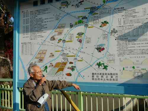 B明治用水の概要説明(写真クリック拡大)明治用水土地改良区の田中さんから説明をうけました。