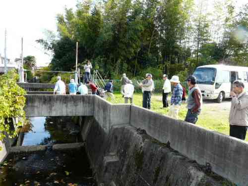 O西城用水サイフォン(矢作川横断)この写真について明治用水用土地改良区の田中さんから説明をうけました。