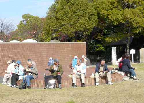 K森前公園(高浜かわら美術館)11:34 高浜かわら美術館に到着、併設の公園で持参の弁当で昼食をとり、 公園内にある塩焼瓦窯、かわら美術館ロビーなどを見学しました。