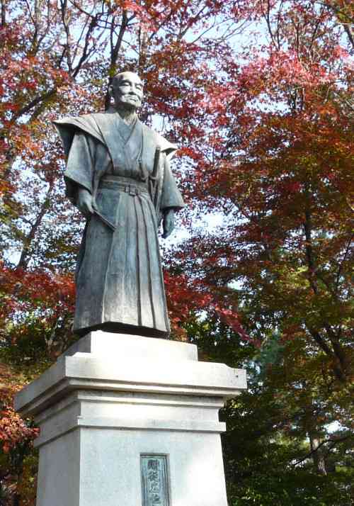 Q都築弥厚翁の銅像(写真クリック拡大)弥厚公園には、都築弥厚翁の立派な銅像が建っています。 彼は、和泉村の地主で酒造を営み、代官をつとめていたが、農民の苦境を救うために、 およそ200年前の文化の頃、矢作川の水を碧海台地に導いて、 大規模な新田開発をおこなおうと最初に江戸幕府に嘆願書を出した。
