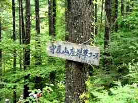 赤松・唐松・シラビソ林を直進し、林道出会経由でキャンプ場へ、